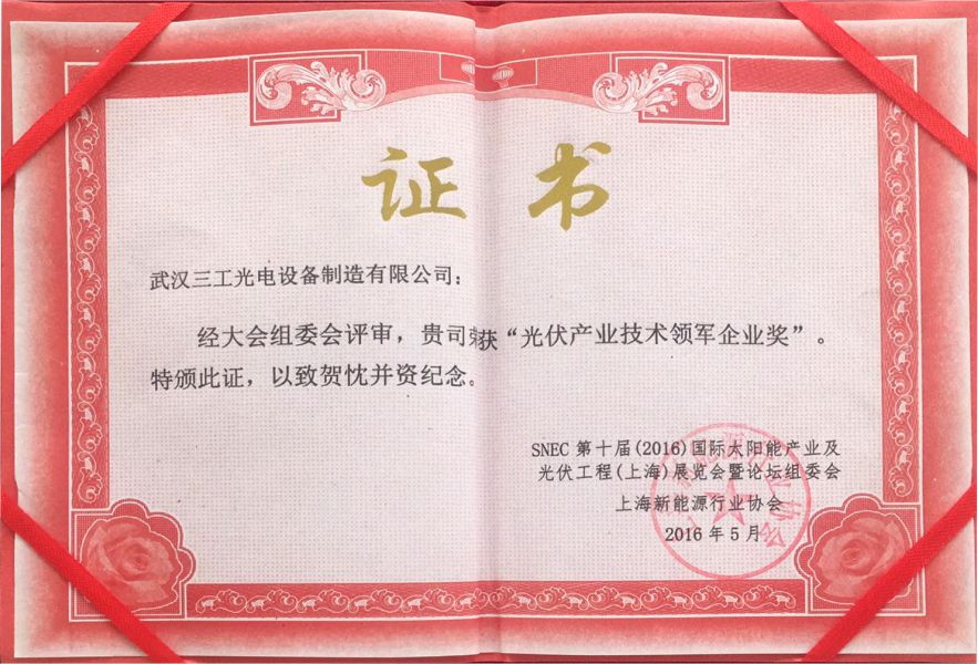 2016年获得“SNEC展会”吉瓦级金奖荣